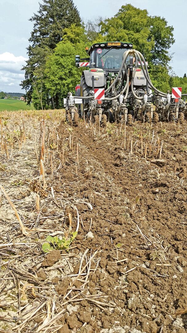 Die Karte des Schlags «Halti Hubel» sieht aus wie ein abstraktes Kunstwerk. Damit hat Christoph Schori den Traktor gefüttert, bevor er im Strip-Till-Verfahren Mais gesät hat – je nach Zone zwischen 95 und 110 Körnern/m2. Heute präsentiert sich ein einheitlicher Bestand im Feld und Schori stellt klar: «Handgelenk mal Pi ist das ganz sicher nicht.» [IMG 2] Voraussetzungen gegeben Für die teilflächenspezifische…