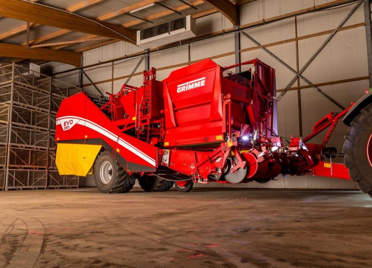 Mit dem Grimme Roder EVO 280 kommt der erste sich automatisch einstellende Kartoffelroder auf den Markt. Kennzeichen sind der 8 t große Bunker und die teleskopierbare Achse. Auf der Straße bleibt der Roder unter 3 m Transportbreite, auf dem Feld schiebt sich die Achse auf 3,5 m Breite und sorgt für mehr Stabilität. Die Tiefensteuerung und alle Trennaggregate lassen sich stufenlos den Erntebedingen anpassen und per ISOBUS steuern. Seit neuestem auch voll automatisch. Mit Speedtronic-Web regelt der Roder die Siebbandgeschwindigkeit in Abhängigkeit von Fahrgeschwindigkeit und Last. Dadurch soll ein dichtfahren der Maschine verhindert und der Fahrer entlastet werden.