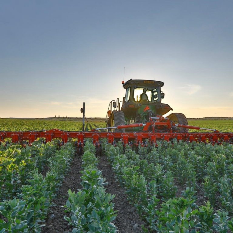 Der Transformer VF bildet die Basis für die neue Familie der Hackgeräte im Hause Horsch. VF steht hier für VariableFrame, den gibt es in 6 bis 12 m Arbeitsbreite. Der Seitenverschieberahmen ist in der Grundmaschine integriert und arbeitet nicht über die sonst gängigen Zwischenkoppelrahmen. Der Durchgang unter dem Rahmen beträgt 660 mm, es können Reihenabstände von 25 bis 90 cm abgedeckt werden. Durch ISOBUS lässt sich die Maschine mit vielen Kamerasystemen kombinieren.