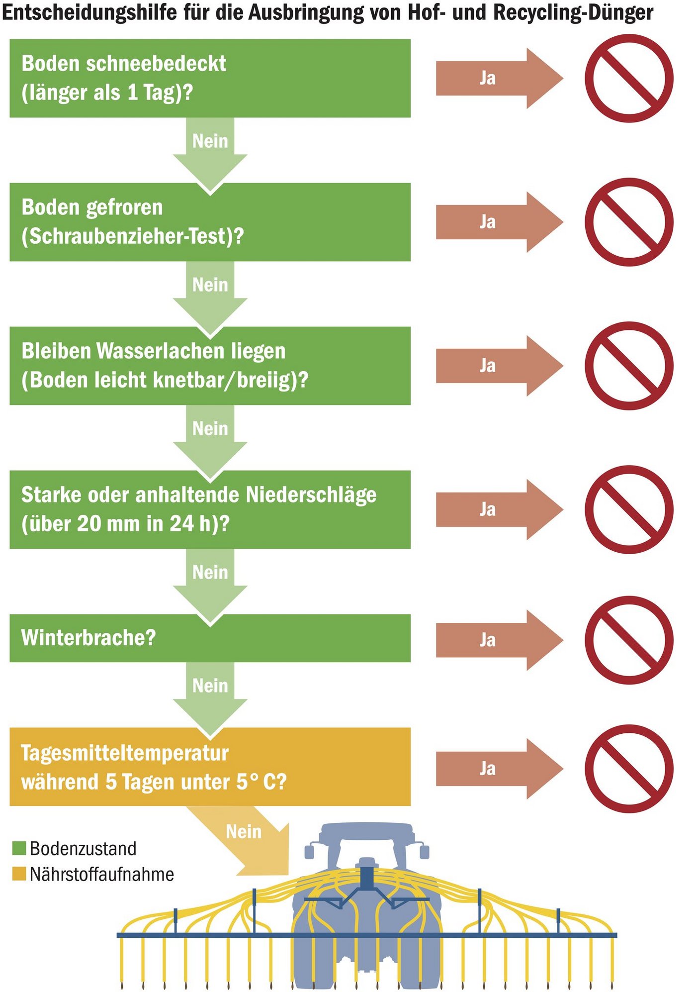 Die Sonne scheint, die Tagestemperaturen sind frühlingshaft und ein Hauch von Gülle liegt in der Luft. Einige Landwirte oder Landwirtinnen bringen ihre Hofdünger bereits jetzt auf den Feldern aus. Gemäss der Chemikalien-Risikoreduktions-Verordnung ist das Ausbringen von Hofdüngern in den Wintermonaten verboten – wenn der Boden wassergesättigt, gefroren, schneebedeckt oder ausgetrocknet ist und die Pflanze Stickstoff…
