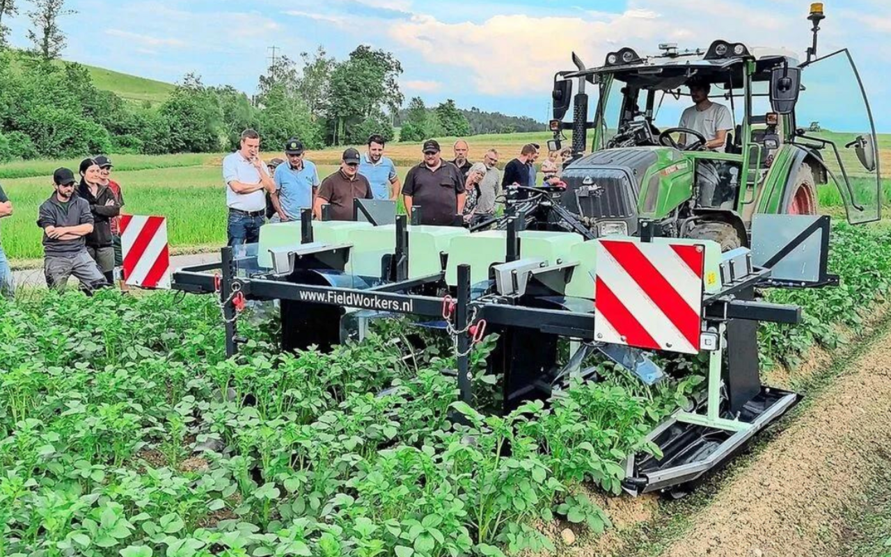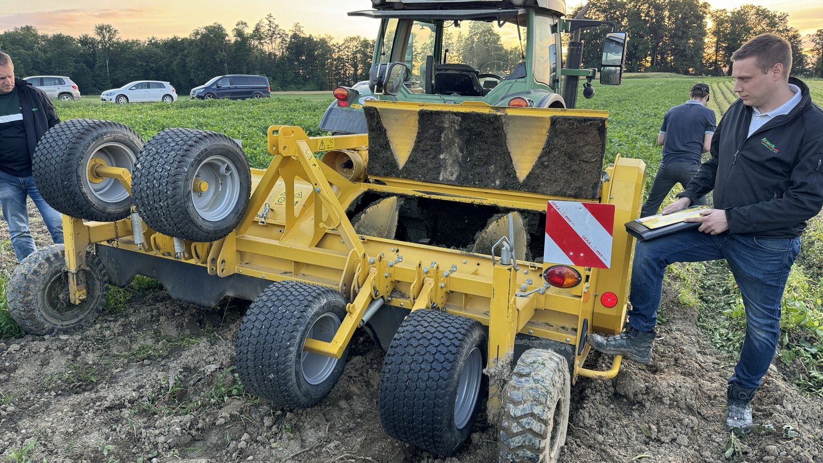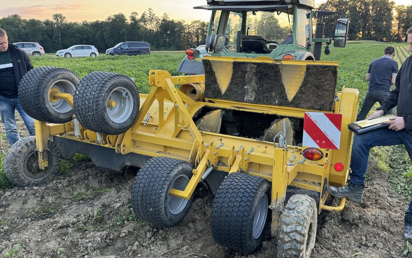 Über diese sanften «Ohrfeigen» freuen sich die Kartoffelpflanzen. Ausgeteilt werden sie nämlich vom Kartoffelkäferfänger, einer von der Firma Fieldworkers in Holland entwickelten Maschine. Die Maschine verfügt über rotierende Plastiklamellen, die die Käfer an den Pflanzen abstreifen und in darunterliegenden Auffangbehältern auffängt, damit sie später entsorgt werden können. Zu sehen gab es sie am jährlich…