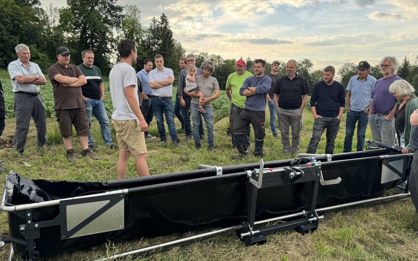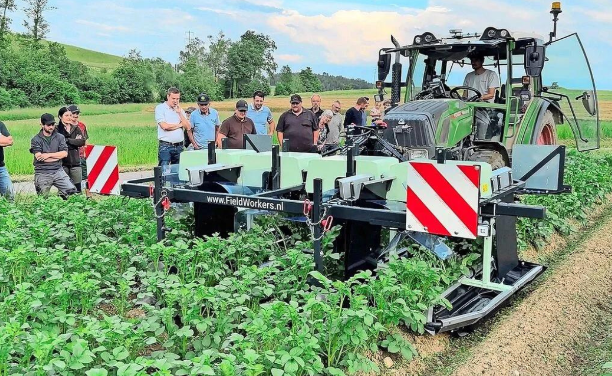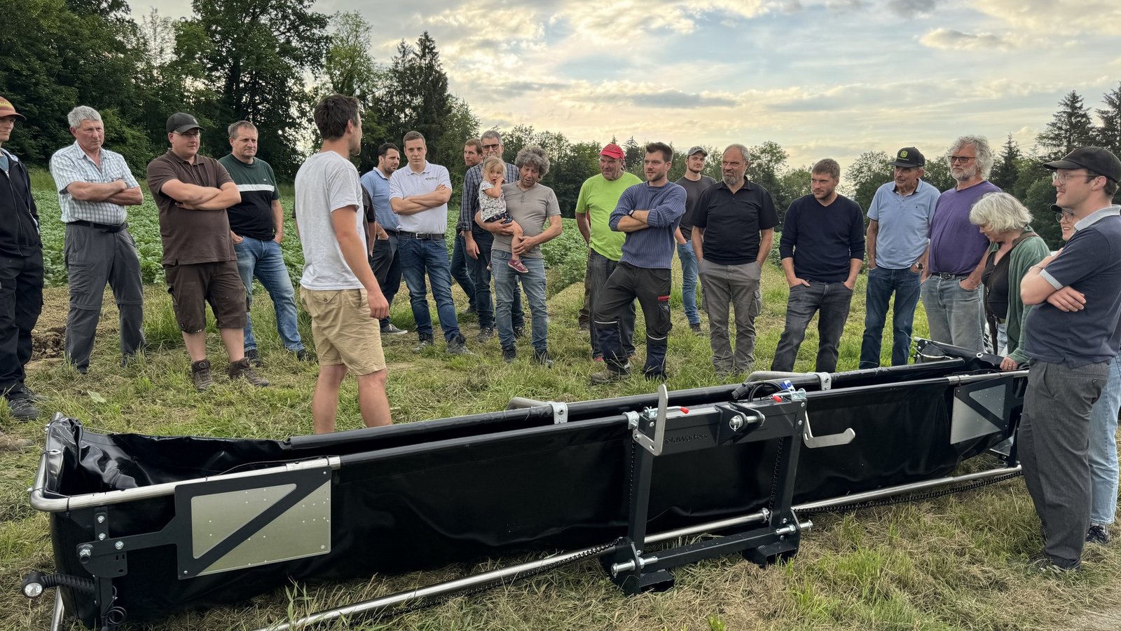 Über diese sanften «Ohrfeigen» freuen sich die Kartoffelpflanzen. Ausgeteilt werden sie nämlich vom Kartoffelkäferfänger, einer von der Firma Fieldworkers in Holland entwickelten Maschine. Die Maschine verfügt über rotierende Plastiklamellen, die die Käfer an den Pflanzen abstreifen und in darunterliegenden Auffangbehältern auffängt, damit sie später entsorgt werden können. Zu sehen gab es sie am jährlich…