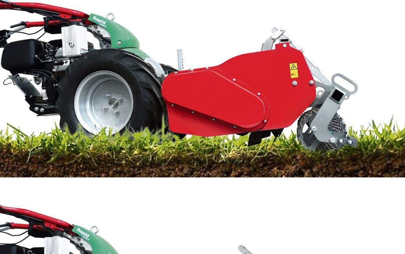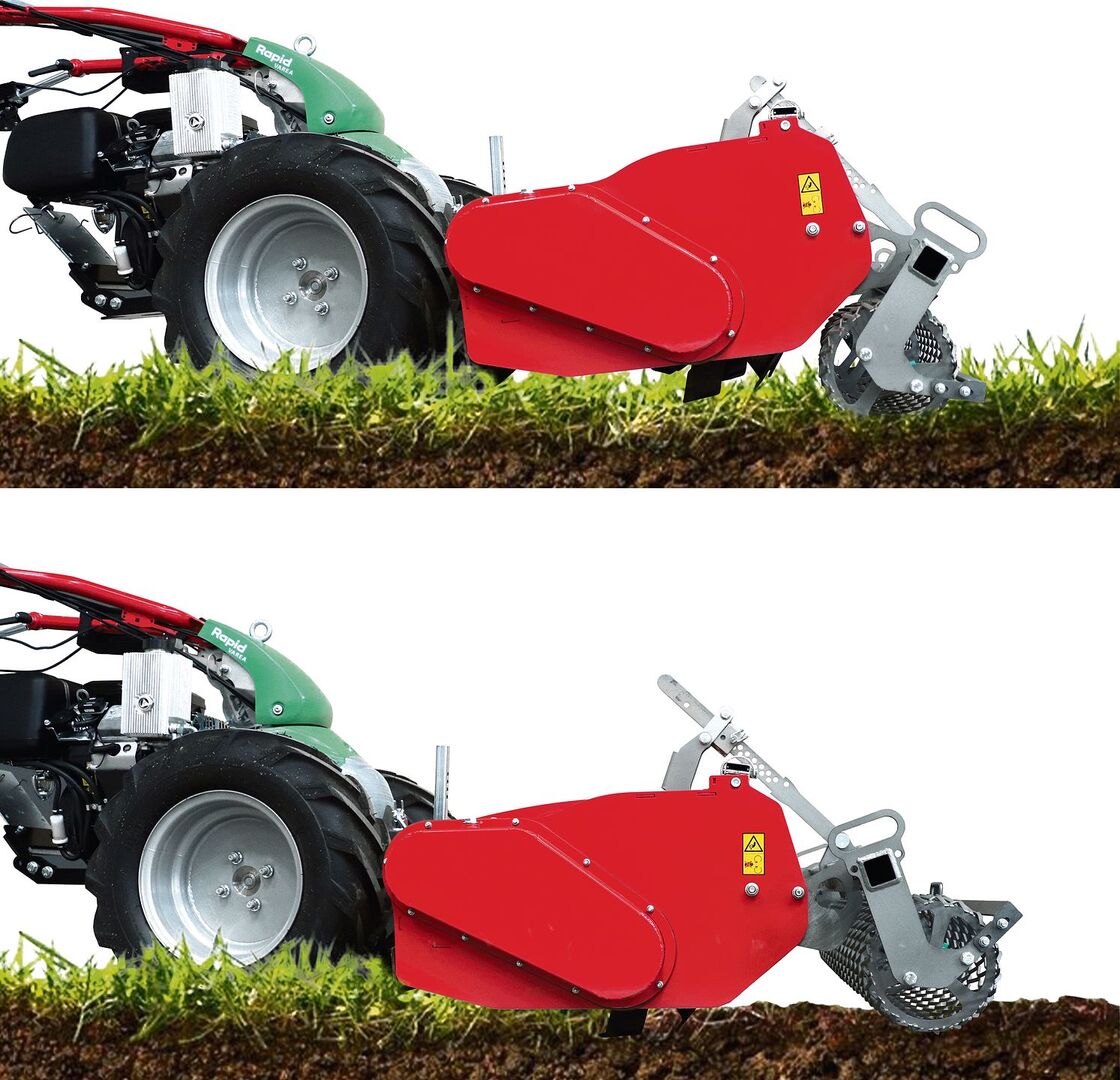 Nachdem Rapid bereits in der Vergangenheit eine Umkehrfräse eines anderen Herstellers im Angebot führte, hat das Traditionsunternehmen nun eigene Maschinen entwickelt. Folglich sind die neuen Umkehrfräsen von 70 bis 100 cm optimal auf die einachsigen Geräteträger von Rapid abgestimmt.