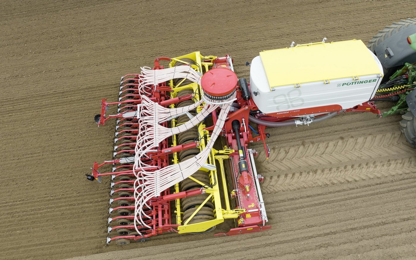 Durch die grossen Packerreifen werden der Bodendruck und der Rollwiderstand verringert, wodurch hohe Fahrgeschwindigkeiten möglich sind. Damit auch bei höherem Tempo exakt dosiert und präzise gesät werden kann, setzt Pöttinger weiterhin auf das Aerosem-Drucktanksystem und auf das Dual-Disc-Doppelscheibenscharsystem.