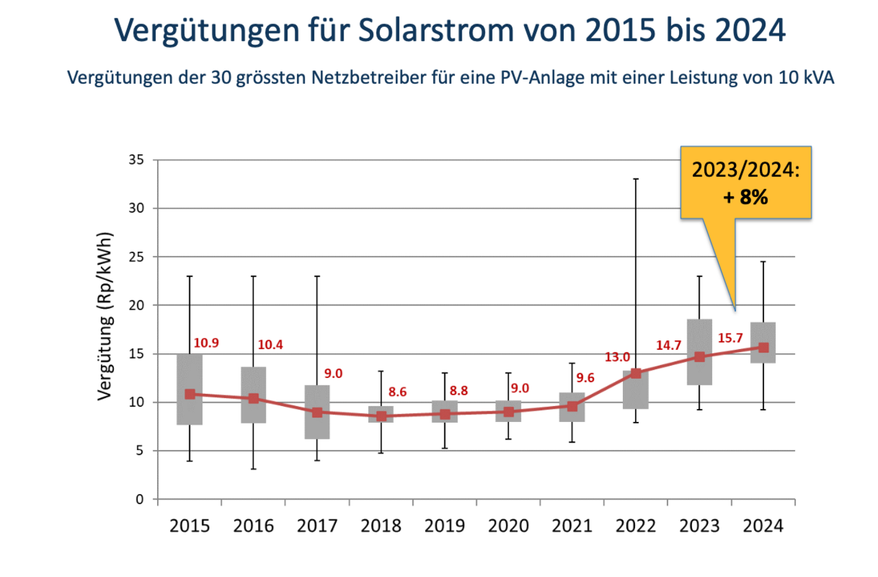 Der Verband unabhängiger Energieerzeuger (VESE) hat die bisher bekannt gegebenen Vergütungen der 30 grössten Netzbetreiber der Schweiz ab 1. Januar 2024 ausgewertet. Diese Auswertung zeigt einen Anstieg von acht Prozent im Vergleich zu den Vergütungen in diesem Jahr, wie die Organisation in einer Medienmitteilung schreibt. Dies nachdem die Vergütungen schon im laufenden Jahr deutlich angehoben wurden. Der…
