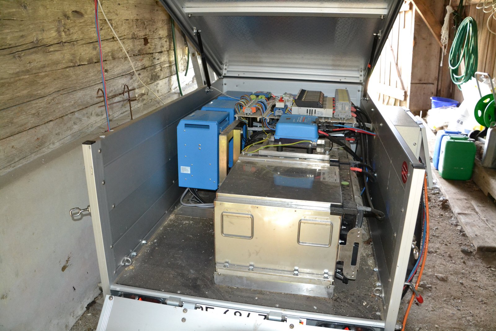 Die verbauten Solarpanels leisten 6kW damit wird die umweltfreundliche, langlebige 28kWh Salzbatterie aus Schweizerproduktion gespiesen. Mit den 9kW Wechselrichterleistung wird die AC-Spannung von 400V erreicht. Der Strom ist also 230V einphasig und 400V 3-phasig verfügbar. Angeschlossen werden Melkmaschine, Melkstandbedienung, Milchkühlung, Käserührwerk, Beleuchtung, Kühlschrank, Batterieladegeräte, Hochdruckreiniger, Telefon und Kleingeräte. Die Salzbatterie speichert den Strombedarf für 2 Tage. Als Notstromerzeugung dient bei fehlendem Sonnen-schein von mehr als zwei Tagen der alte Generator, welcher auch die Salzbatterie speisen könnte. Fossile Brennstoffe werden so um 80% eingespart.