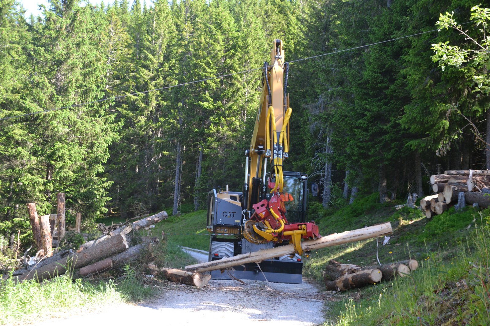 Auch das entasten der Bäume ist heute keine Schwerstarbeit mehr: Mit dem Harvesterkopf Woody wird das Entasten sogar zu Spass. Um das Entasten schnell und flexibel machen zu können, braucht es dafür auch ein starkes Gefährt. So ist der Highlander ein äusserst leistungsstarker Radharvester für mittleres bis starkes Holz. Die einzigartige Geländegängigkeit und seine flexiblen Einsatzmöglichkeiten zeichnen ihn aus. Im normalen Harvestergelände bewegt sich der Highlander mit besonderer Wendigkeit durch ein spezielles Lenkystem.