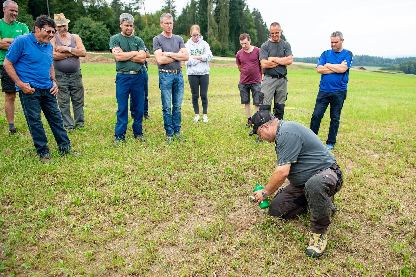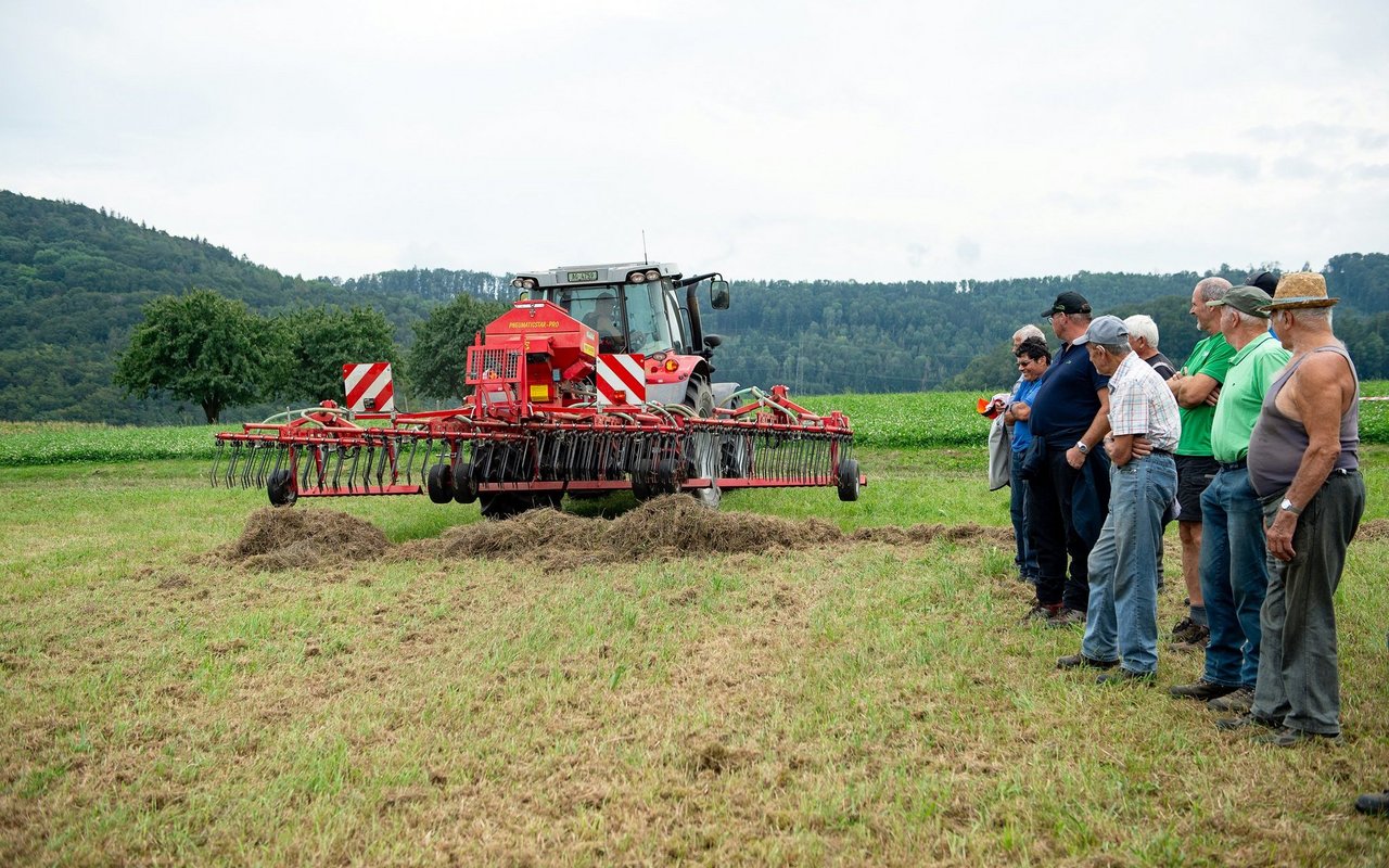 «Das Potenzial, das unser Grünland in der Schweiz hat, ist riesig. Das gilt es zu nutzen», meinte Stefan Lüthy von UFA-Samen an der Übersaatverfahren-Maschinendemo vergangene Woche in Mandach. Wichtig sei, bei degenerierten Beständen nicht zu lange abzuwarten, sondern ein Sanierungskonzept zu erstellen. Vor Ort trafen die Interessierten auf eine mit zwei bis drei Schnitten extensiv genutzte Parzelle mit eher leichtem…