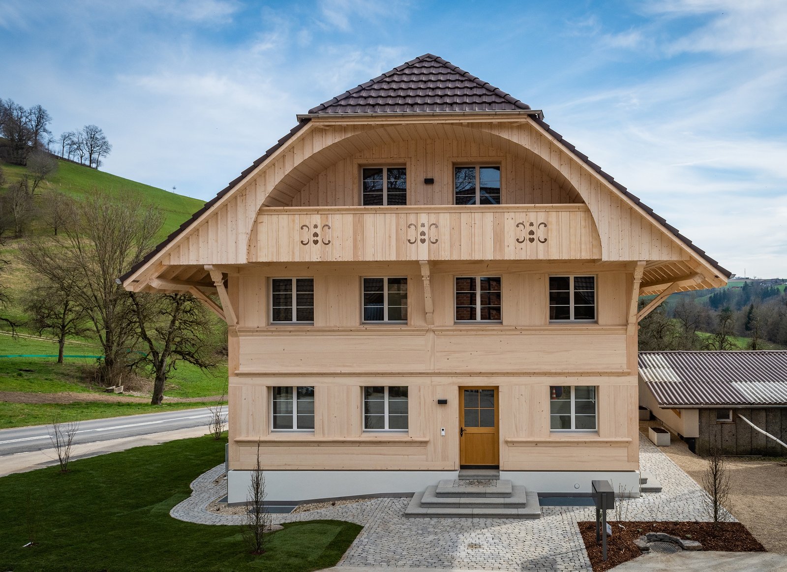 «Für uns war immer klar, dass wir Schweizer Holz verwenden wollen», sagt Pirmin Bucheli. Schliesslich besässen sie selber auch 4 ha Wald und so bleibe die Wertschöpfung in der Region. Eigenes Holz zu verwenden, war zwar schwierig, da sie lange nicht wussten, ob und wann überhaupt ein Ersatzneubau für das alte Bauernhaus realisierbar sei. Bucheli hatte vor einiger Zeit einen grossen Holzschlag von rund 200 m3 wegen…