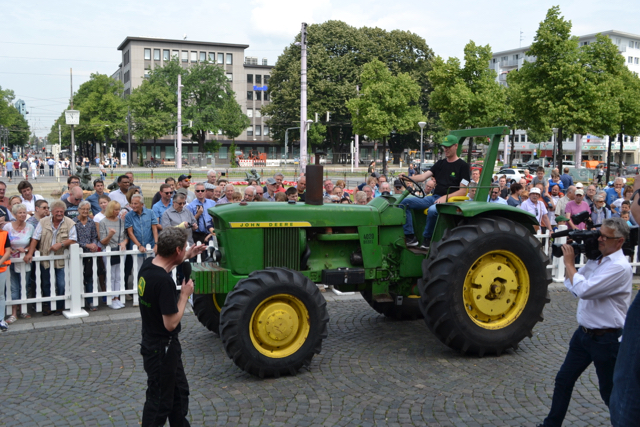 Am 16. Juni feierte Mannheim «100 Jahre John Deere Traktoren». Beim Mannheimer Wasserturm gabs eine Traktorenparade, wo die Geschichte der John Deere Traktoren aufgerollt wurde. Motorenlärm und Rauch in der Luft machten den Tag für Besucher noch eindrücklicher. Auf dem Gelände des Mannheimer-John-Deere-Werks war zudem Tag der offenen Tür. Auch die Produktion konnte besichtigt werden.