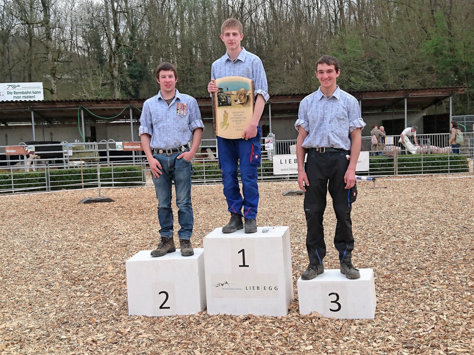 Dem erst, zweit und drittplatzierten Kandidaten überreichten Hans-Ueli Lüscher, Präsident der Fachkommission Bildung des Bauernverbandes Aargau und Hansruedi Häfliger, Direktor des landwirtschaftlichen Zentrums Liebegg, im Rahmen der Siegerehrung ein Präsent. Der Sieger, David Hauri wird sich voraussichtlich 2018 an den SwissSkills in Bern mit den besten Schweizer Landwirten messen.