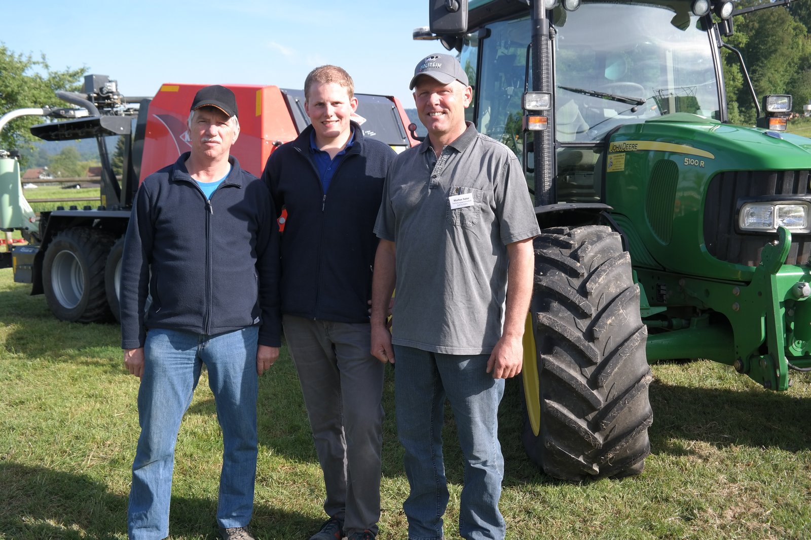 Der Flurgang mit gut 100 Personen fand auf dem vielseitigen 49 ha Betrieb von Markus und Michael Suter statt, die zusammen mit Werner Zobrist eine Tierhaltergemeinschaft (THG) mit 40 Milchkühen betreiben. „Die überbetriebliche Zusammenarbeit spielt in unserem Betrieb eine zentrale Rolle im Ackerbau und bei den Lohnarbeiten“, hielt Sohn Michael Suter fest. "Wir betreiben das Dreschteam zusammen mit Haller & Suter, den Ballenexpress Bünztal und die Haspelgemeinschaft verbunden mit unserer Tierhaltergemeinschaft und Andy Savoldi." Auf den 34 Hektaren Ackerbaufläche der THG werden Saatgetreide, Zuckerrüben, Verarbeitungsgemüse (Bohnen und Erbsen), Sonnenblumen sowie Körner- und Silomais angebaut. Mit dem Futter aus den Oekowiesen wird eine Pferdepension unterhalten.