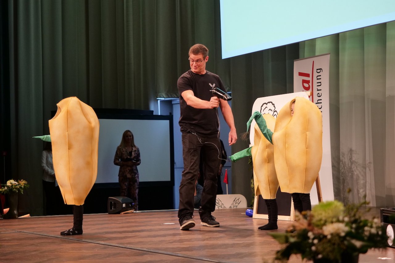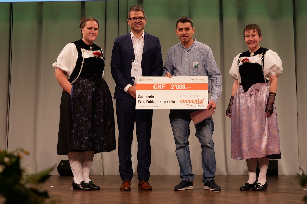 Auch das Publikum kam zum Zug. Es entschied, welche Innovation den Saalpreis erhält. Dieser ging an Evelyne und Hansruedi Peter aus Steffisburg BE. Sie vermarkten ihre Milch selbst. An zwei Standorten betreiben sie einen für die Schweiz neuartigen Selbstbedienungsautomaten. Dort verkaufen sie ihre pasteurisierte Milch sowie zwei neue Mischgetränke.