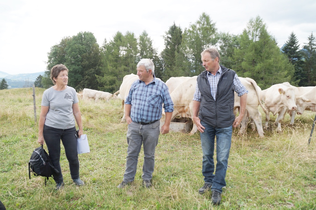 In einer ersten Bilanz zeigte sich der neue Präsident des FAV, Henri Buchs, sehr befriedigt. Weiden und Alphütten würden gut unterhalten, erklärte er gegenüber der Zeitung «La Guyère». Er dankte den Eigentümern und Bewirtschaftern für ihr Engagement. Die Kommission von Präsidentin Francine Bourquenoud begann ihren Rundgang auf der unerschlossenen Alp Les Chenettes. Die Tiere hatten diese Vorweide schon verlassen und weideten auf der Alp Les Ecouvayes. Auch auf dieser Weide hatte man den Eindruck, dass die Bestossung zu spät erfolgte und noch viel kniehohes dürres Heugras stand. Die Kühe suchten im angrenzenden Wald Schatten. Für das Melken steht ein mobiler Melkstand mit sechs Aggregaten zur Verfügung. Auf der Weide Les Plains sömmert Besitzer Simon Borcard für einen Landwirt eine 30 Tiere zählende Herde Mutterkühe mit Kälbern der Rasse Charolais. Jeden zweiten Tag schaut der Besitzer aus Vaulruz zu den Tieren. Wie die anderen zwei Alphütten ist auch diese nicht bewohnt.