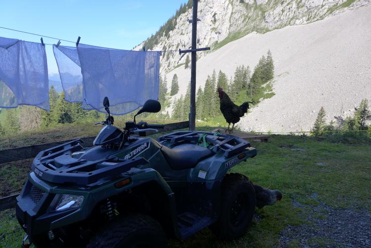 So vergeht der Tag wie im Hühnerflug. Und abends wenn die Sonne untergeht, kommt der Zweibeiner um uns wieder in unsere Behausung zu bringen. Aber darauf haben wir ganz und gar keine Lust und laufen hier hin und dorthin, teilen uns auf, laufen um einen Fels herum und genießen die letzten Minuten des Tages. Irgendwann können wir aber nicht mehr, zumal der fiese Vierbeiner wieder dabei ist und gehen in unsere Nachtstätte. Hier hat jeder von uns seinen Platz auf der Stange.