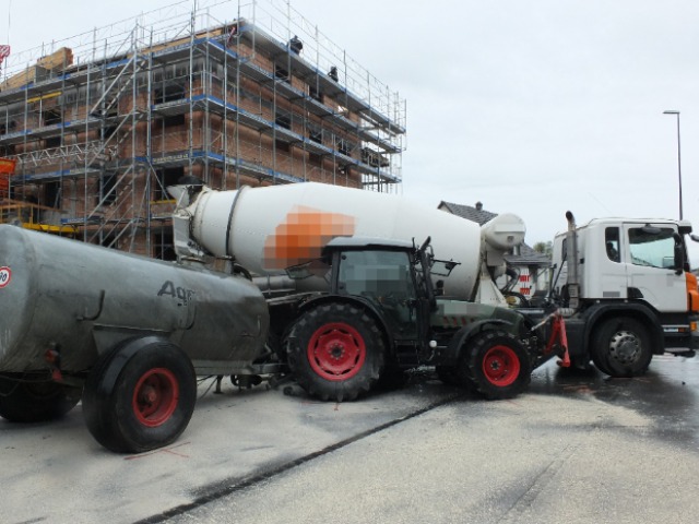 Der 68-jährige Fahrer des Traktors war am Mittwochvormittag (29. April) mit einem Druckfass in Altstätten SG unterwegs gewesen. Bei einer Baustelle kam es zur Kollision mit einem rückwärtsfahrenden Betonmischer, teilt die Kantonspolizei St. Gallen mit.