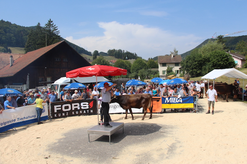 Das Milchvieh verkaufte sich besser, als man wegen der aktuellen Trockenheit befürchtet hatte. Die 27 Fleckkühe und -rinder galten im Schnitt 3367 Franken, die 24 Holsteinkühe und -rinder 3331 Franken und die neun Braunviehkühe und -rinder 3378 Franken. Wenn man nur das Milchvieh mit dem letzten Jahr vergleicht, verliessen alle Tiere den Platz teurer als 2017, als noch viel mehr Futter in den Scheunen lagerte.