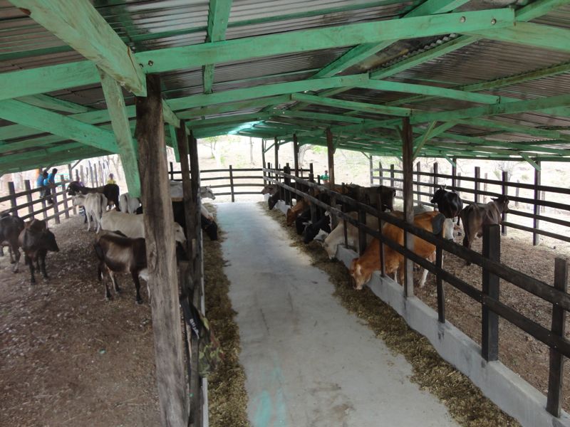 Ist unser Pickup gerade besetzt oder kein Fahrer vorhanden, wird ein Arbeiter die Silage in einer Schubkarre bis zum Unterstand bringen müssen. Aber auch so ist die tägliche Fütterung im Vergleich zum letzten Jahr wesentlich einfacher geworden. Auch für das Melken, vor Sonne und Regen geschützt, ist der Unterstand ein grosser Gewinn.