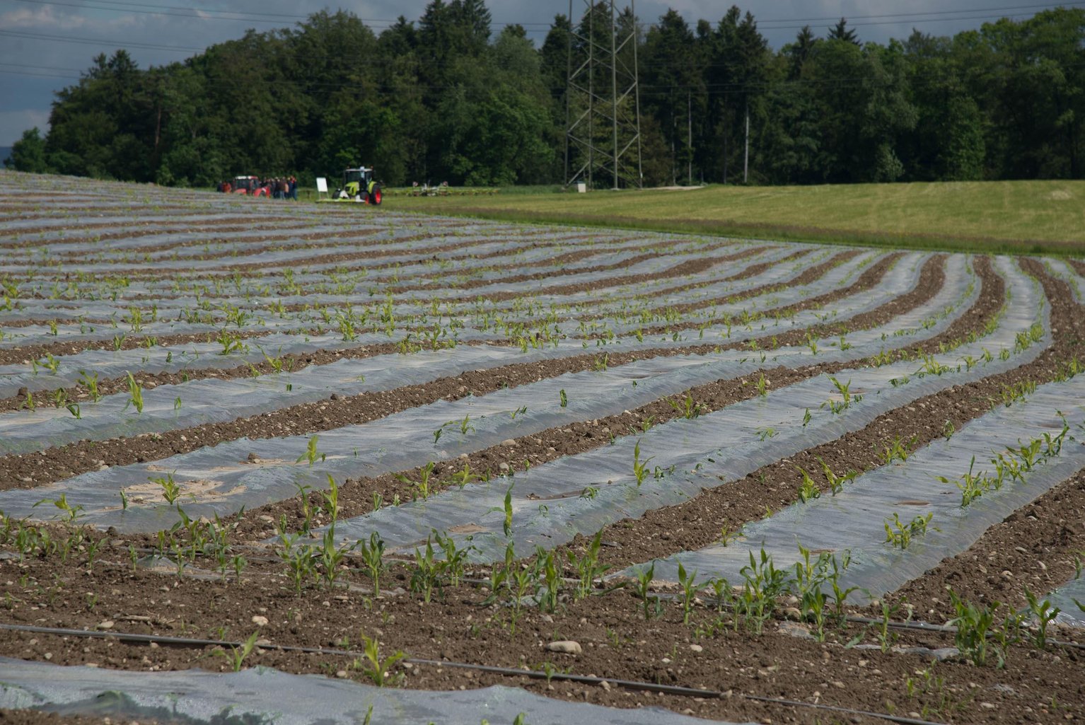 -- NO IMAGE --p class="align-justify">Aufmerksamen Spaziergängern dürfte nicht entgangen sein, dass die Landwirte in den letzten Jahren mehr Folien auf ihren Feldern einsetzen. Vielleicht die spektakulärste Variante zeigt sich beim Zuckermais: Die ganze Pflanzreihe ist wie in Zellophan eingepackt. Die Maispflanze durchbricht die dünne Folie sobald sie genug gross ist. Mit der etwas futuristisch anmutenden Methode kann die Ernte um zwei Wochen verfrüht werden. Dank der Folientechnik steigt die inländische Zuckermaismenge deshalb an und es muss weniger importiert werden. Die biologisch abbaubare Folie löst sich übrigens nach ein paar Monaten im Boden auf und hinterlässt dort keine schädlichen oder sichtbaren Rückstände.-- NO IMAGE --/p>
