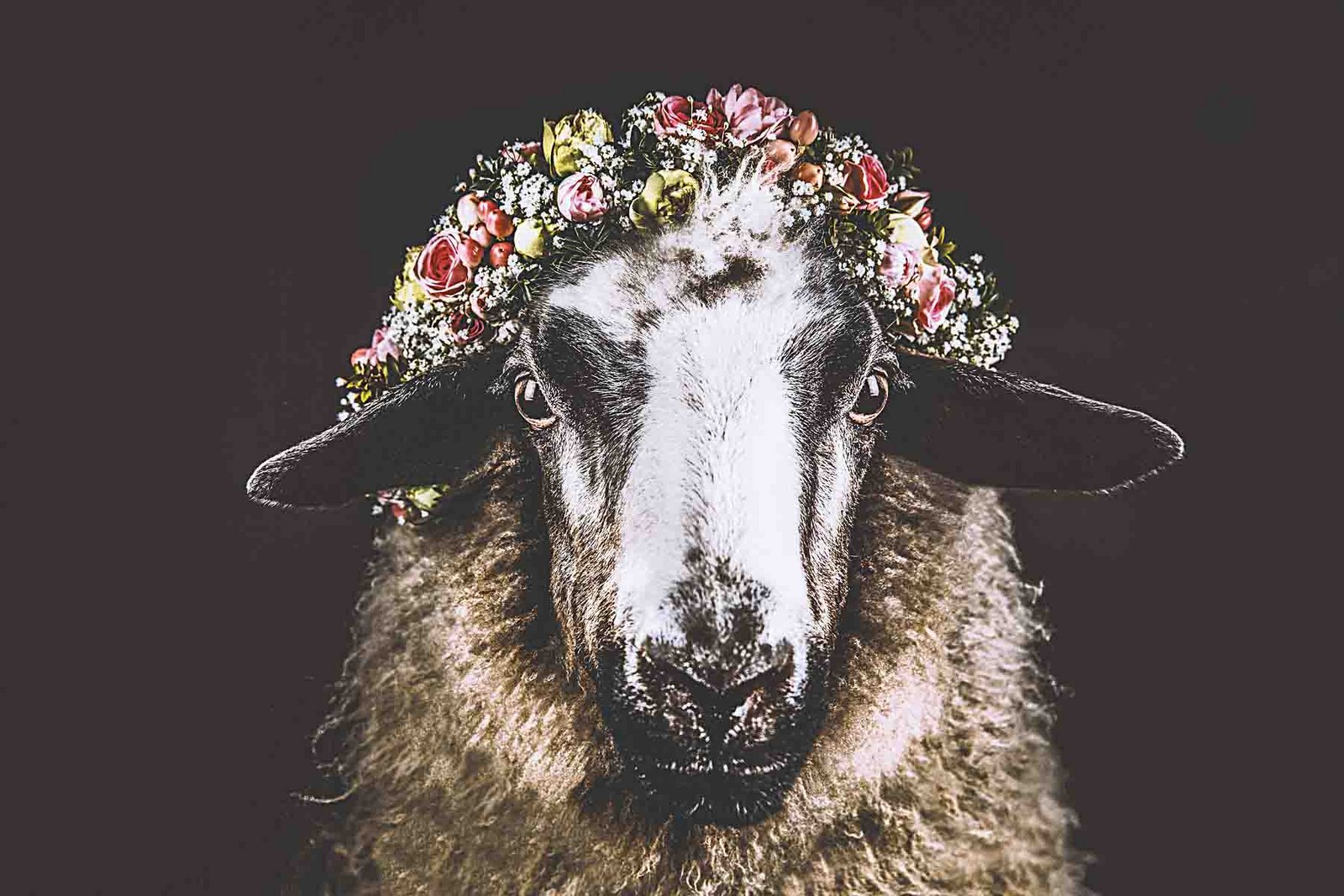 Für die Inszenierung der Tiere im Flower-Power-Stil holt Tina Sturzenegger wunderschöne Blumenkränze aus ihrem Auto. Diese sind von einer Floristin eigens so geflochten, dass sie auf die Köpfe der Schafe passen und befestigt werden können. Sobald alles installiert ist, kommen die Schafe und Lämmer in Aktion. Zusammen mit dem Bauern sucht Surzenegger ihre Protagonisten aus und mit Najat Zinbis Hilfe wird der Kopfschmuck montiert. Im Scheinwerferlicht entwickeln die Schafe sich zu wahrhaften «Topmodels», während Pfister sie an einem Strick festhält.