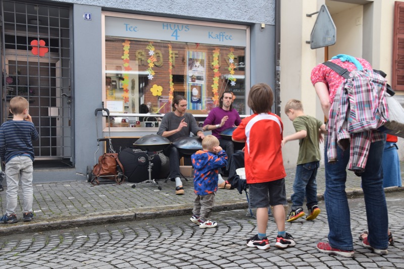 An diversen Ecken im Städtli spielen Strassenmusiker, teils mit aussergewöhnlichen Instrumenten. Für Marktbesucher die Gelegenheit sich zu entspannen und zu zuhören. Viel Freude haben oft die Kleinen daran. Ohne Scheu tanzen sie völlig losgelöst zu den Klängen, ganz zum Entzücken der Musiker und Zuhörer.