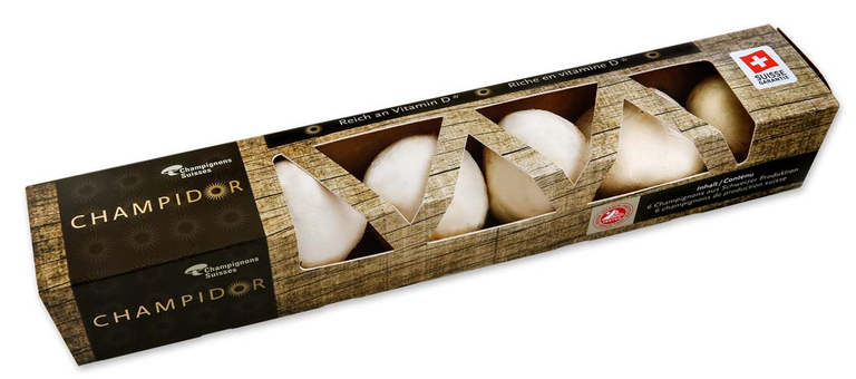 Der Verband Schweizer Pilzproduzenten (VSP) lanciert unter dem Namen "Champidor" Champignons-Pilze, die reich an Vitamin D sind. Bereits 3 Champidor-Pilze decken den täglichen Bedarf an Vitamin D einer gesunden erwachsenen Person zwischen 20 und 60 Jahren.