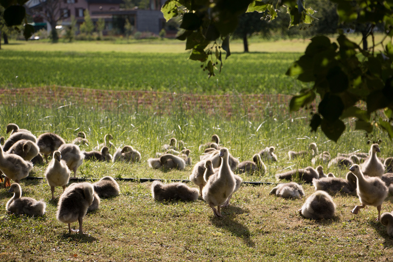 Das Spezialfutter für die Tiere, von denen Peter Eugster auf seinem Hof einige mästet, enthält 51Prozent Ribelmais. Die langsam wachsenden Rassen geniessen neben dem feinen Futter täglich Auslauf. Und sobald die Gänse grösser sind, dürfen sie einen Teil Mais sogar direkt ernten. Dann wird das Maisfeld zur Weide und zum Gänseparadies.