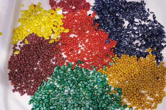 Um die Pflanze gleich vom ersten Stadium an vor Pilzen und Schädlingen zu schützen, werden heute Fungizide und Insektizide mit speziellen Maschinen direkt auf den Samen aufgebracht. Sie sind mit auffälligen Farben eingefärbt, damit sie von nicht-behandeltem Saatgut unterschieden werden können. Gebeiztes Saatgut wirkt effektiv an der Quelle. Flächiges Spritzen oder das Streuen von Granulaten wird dadurch im optimalen Fall nicht mehr nötig.