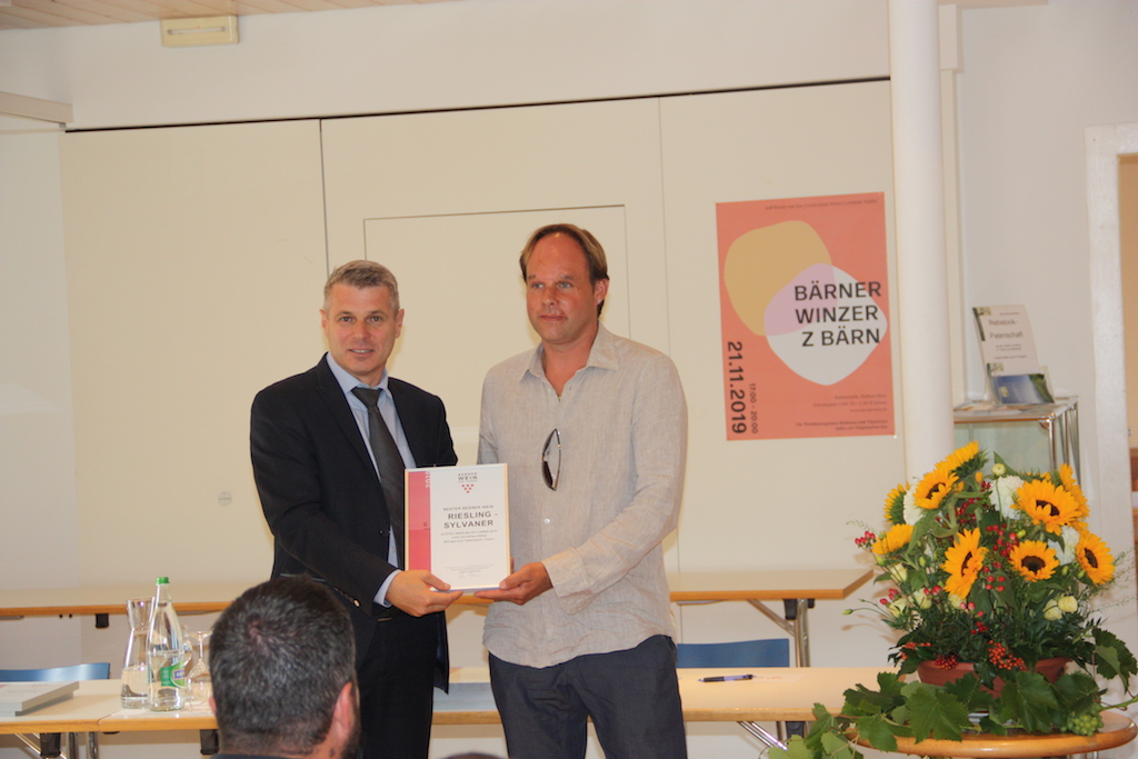 Den zweiten Platz belegt Fredi Marolf, Erlach (Tschugger Chardonnay 2018). Den dritten Platz belegt Gabriel Andrey, Ligerz (Pinot blanc 2017). -