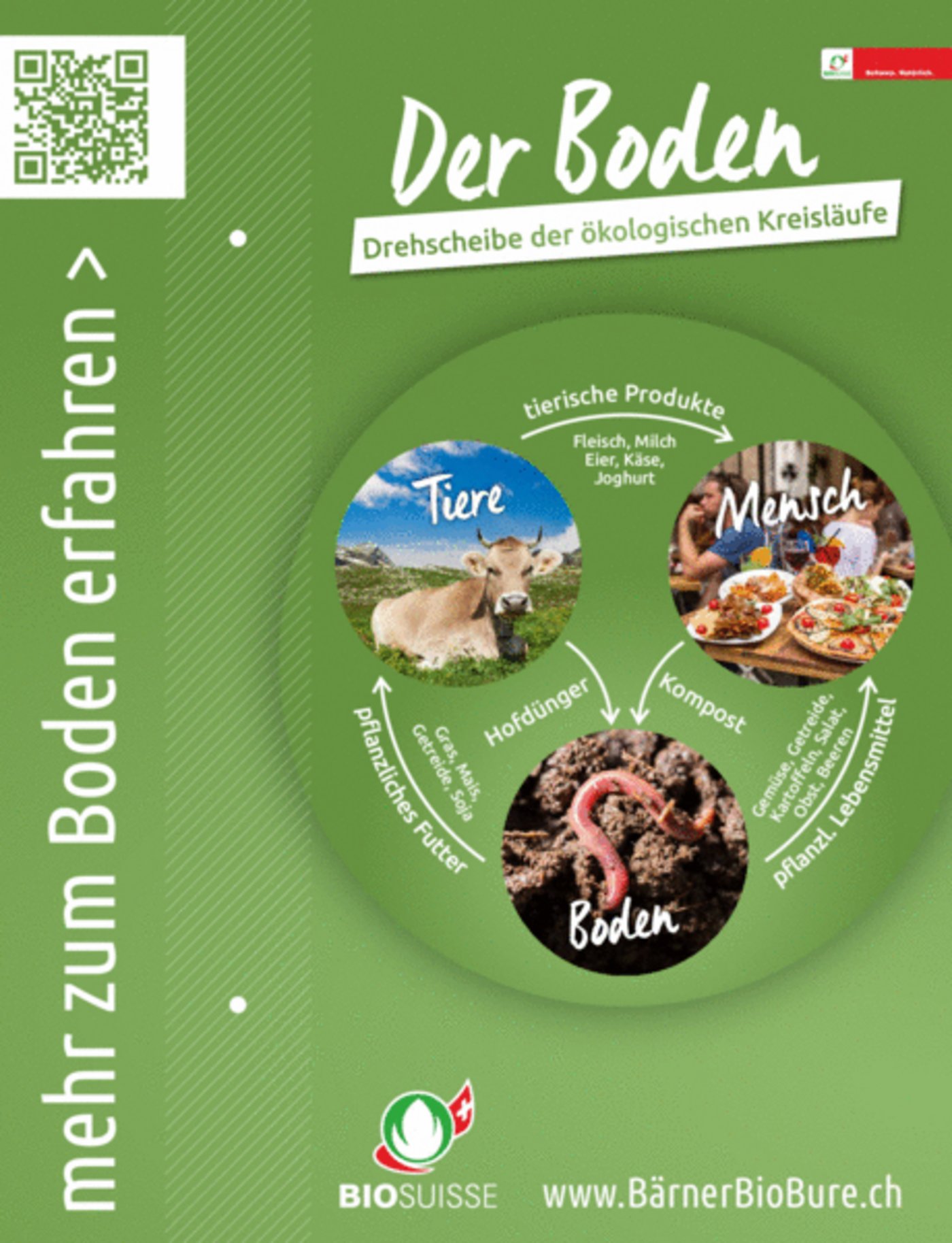 Bereits seien 100 Tafeln im Kanton Bern installiert worden, die unter anderem mittels QR-Codes zu wissenswerten Informationen und spannenden Videos über die Wichtigkeit und Vielseitigkeit der Ressource Boden führten. Rund um den Boden werden vertieft Informationen zu Klima und Gesundheit, verschiedener Bodenbewirtschaftung und Ausbildung mit Boden als wichtigen Bestandteil beleuchtet. Der Boden liege den Bärner Bio Bure am Herzen, wird der Projektleiter Peter Hofer zitiert. Die Biolandwirte und Biolandwirtinnen setzten sich in ihrem täglichen Tun für gesunde Böden ein und wollen nun mit der Platzierung der Feldrandtafeln an ihren Feldrändern aktiv dazu beitragen, fundiertes Wissen über den wertvollen Boden weiterzugeben – denn die Gesundheit des Menschen beginne im Boden.
