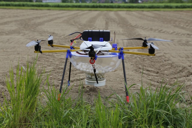 Im Kampf gegen den Maiszünsler werden bereits regelmässig Multikopter eingesetzt. Sie haben Kugeln aus Maisstärke an Bord, in denen Eier der Schlupfwespe sind. Punktgenau werden sie über den Feldern abgeworfen. Nach einiger Zeit schlüpfen die Wespen und vernichten die Eier des Maiszünslers auf dem Feld. Für eine Hektare benötigt die Drohne rund 4 Minuten – eine massive Zeitersparnis