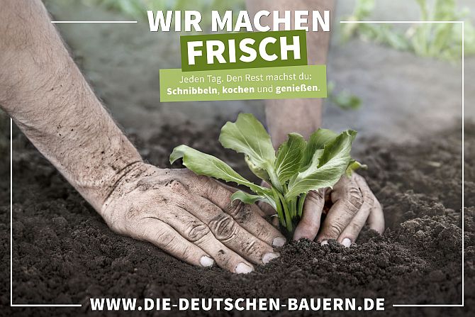 «Wir machen frisch», «Wir machen sauber», «Wir machen zart»: Das sind die ersten drei Slogans der neuen Kommunikations-Offensive des Deutschen Bauernverbands. Der Fokus der Darstellungen liege auf den Händen der Bäuerinnen und Bauern. «Damit wollen wir nicht romantisieren, sondern deutlich machen, dass hinter der modernen Landwirtschaft Menschen und Familien stehen, keine anonymen Agrarfabriken», sagte Joachim Rukwied, Präsident des Deutschen Bauernverbandes, gemäss Mitteilung.