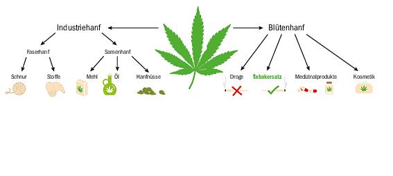Man kann schnell viel Geld verdienen mit Hanfprodukten. Auslöser für den Boom des Tabakersatzes aus Hanfblüten, die zurzeit solch einen reissenden Absatz finden, ist die Firma Biocan AG aus Thayngen SH. Sie hat als erste erkannt, dass Hanf fast ohne THC, dafür mit einem hohen CBD-Gehalt, nicht verboten ist (siehe Kasten). Sofern bei der Herstellung und dem Verkauf alle Hygiene- und Lebensmittelgesetze eingehalten werden. Und sofern dafür Tabak- und Mehrwertsteuer bezahlt werden. Und das wird gemacht. Im August 2016 hat sie ihr Produkt vorgestellt. CBD ist, neben dem THC, das am meisten vorkommende Cannabinoid (Inhaltsstoff). THC ist psychoaktiv und per Betäubungsmittelgesetz verboten. CBD gilt nicht als Betäubungsmittel. Es wirkt nach Angaben der Hersteller angstlösend und schmerzstillend sowie muskelentspannend.