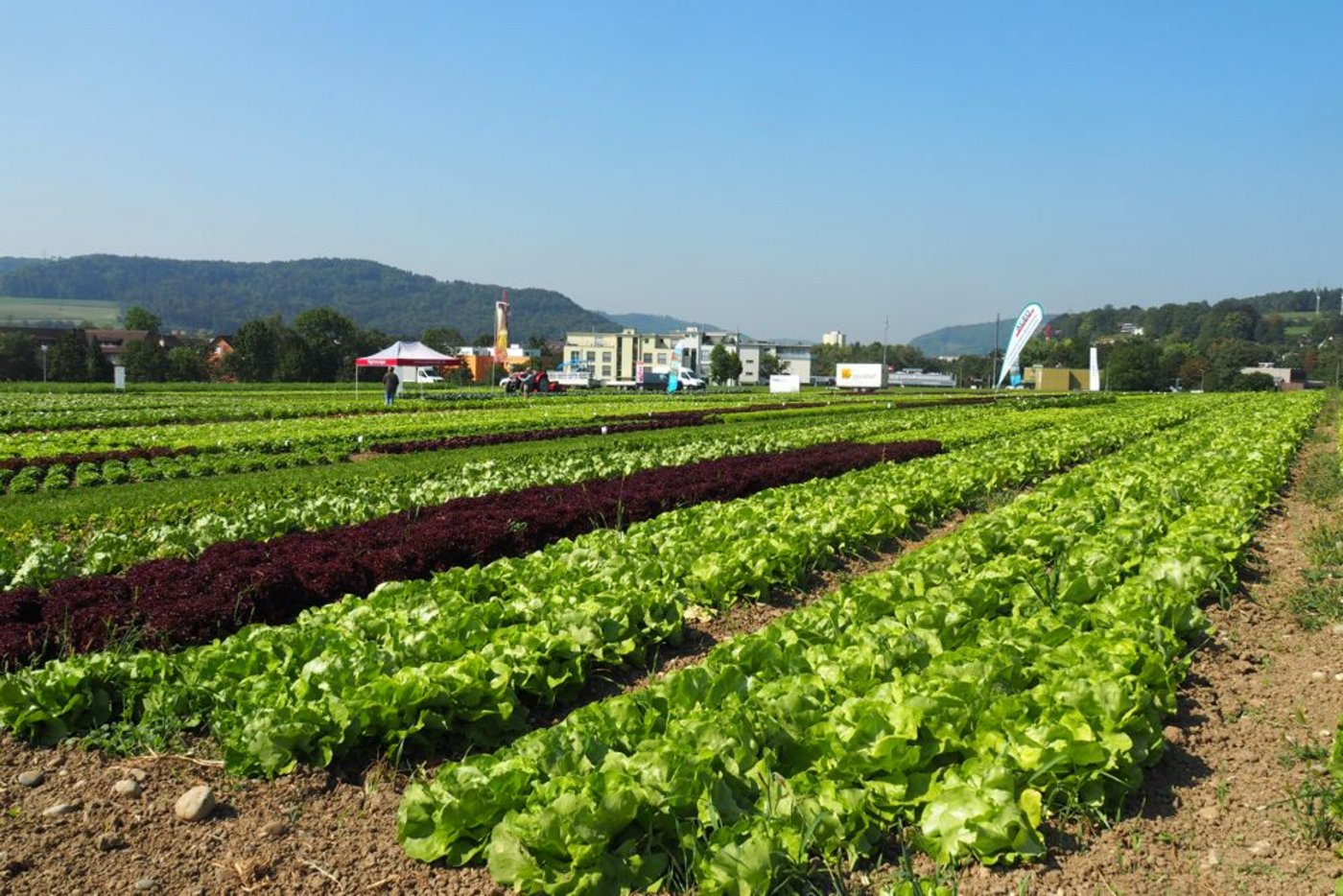 Alle Salatsorten wurden unter den gleichen Bedingungen grossgezogen. Das gab den gut 100 Teilnehmerinnen und Teilnehmern der Tagung einen Einblick auf die sortenspezifischen Anfälligkeiten auf Schädlinge und Krankheiten.