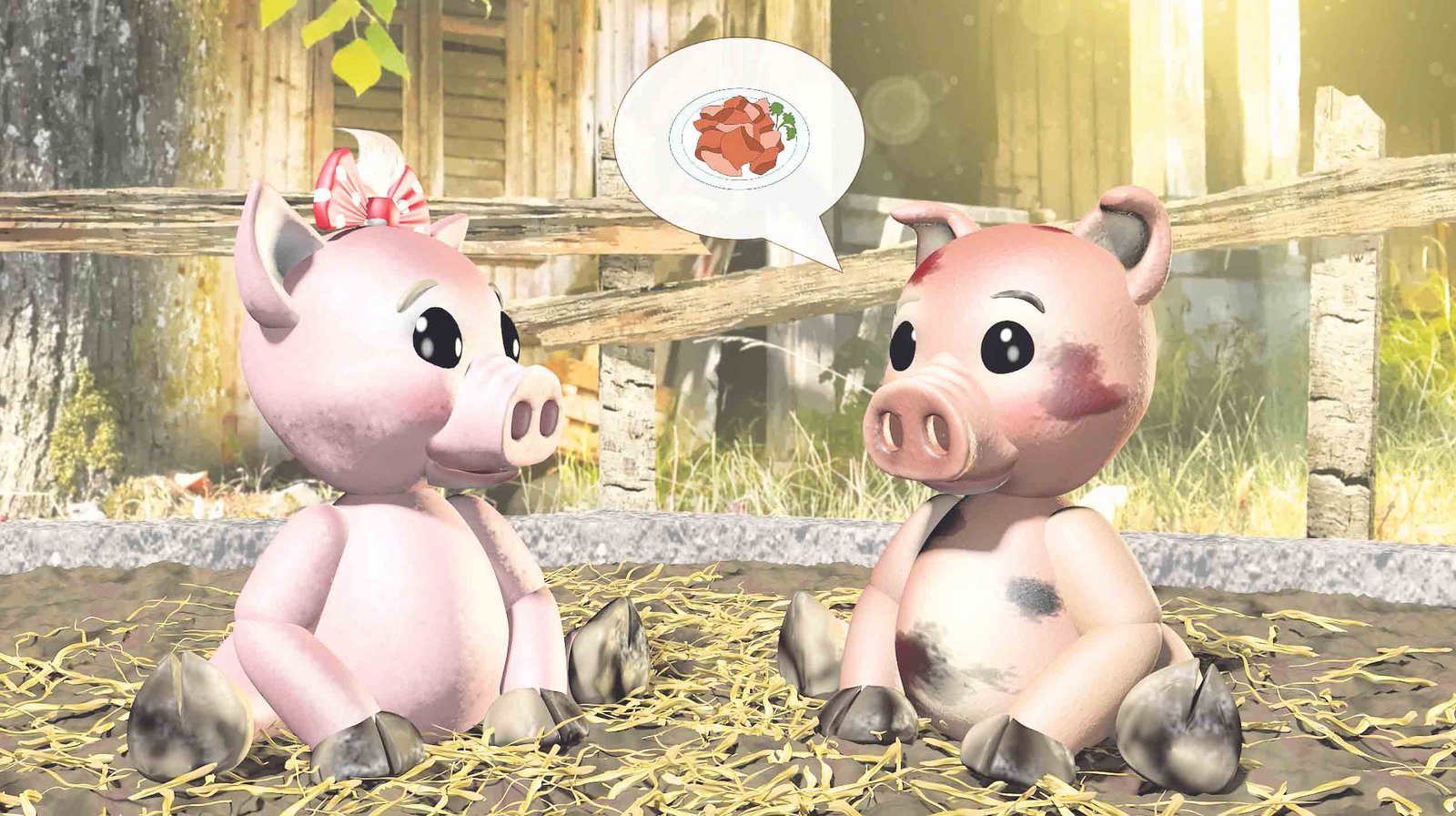 Zwei Ferkel sprechen über ihre Zukunftswünsche. Während das eine ganz dem heutigen Trend entsprechend meint, es möchte mal Plätzli werden, beginnt das andere mit Côtelette, Speck und Cervelat, zählt dann aber auch Butterzopf, Leberli, Schinken, frittierte Schweinsöhrli und vieles mehr auf und das alles möchte es neben den Plätzli auch noch werden. Filmende.