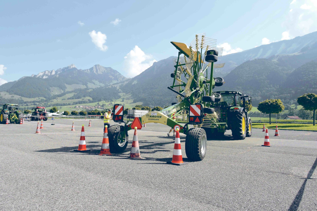 Beim Posten 5 wurde es noch schwieriger: Mit einer speziellen Vorrichtung am Heckhubwerk musste der Deckel einer Cola-Flasche entfernt werden. Mit einem Kippwagen bekam es der Lenker beim Posten 6 zu tun. Die Manöver musste er einzig über den Rückspiegel ausführen.