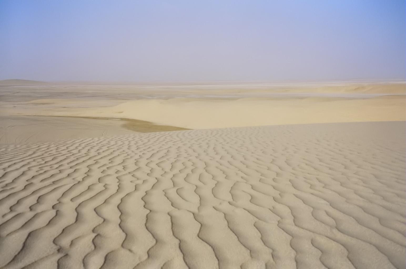 Die Arme vor der Brust verschränkt, aufrechte Haltung, Bauhelm auf dem Kopf - Ramis Al Chajat sieht in seinem langen weissen Gewand, dem katarischen Thub, aus wie ein Feldheer, als er die sieben Bagger bei der Arbeit beobachtet. Tack, tack, tack. Unaufhörlich meisseln die Maschinen den harten Boden auf. Tack, tack, tack.