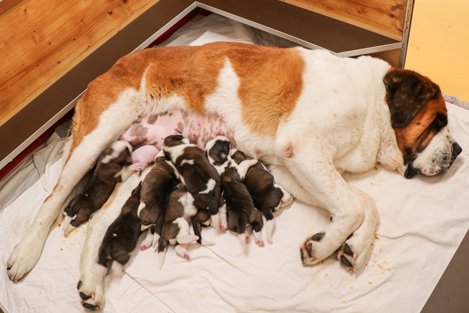 Die Kurzhaar-Hündin «Hoxane du Grand St. Bernard» und der Kurzhaar-Rüde «Florenzo vom Baronenschloss» wurden am 1. April Eltern von sechs Rüden und vier Hündinnen, «alle bei bester Gesundheit», wie es in einer Medienmitteilung vom Donnerstahgabend heisst.