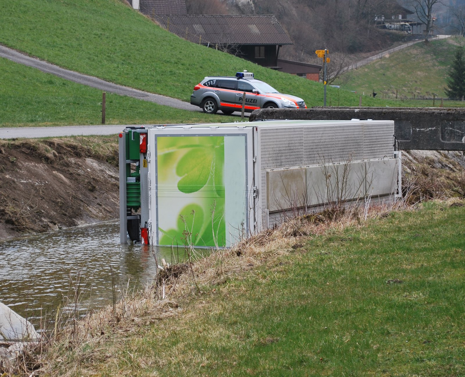 Zur Bergung des LKWs mussten zwei Spezialfahrzeuge aufgeboten werden. Die Feuerwehr Wolhusen richtete im Fluss eine Sperre für die ausgelaufende Flüssigkeit ein.