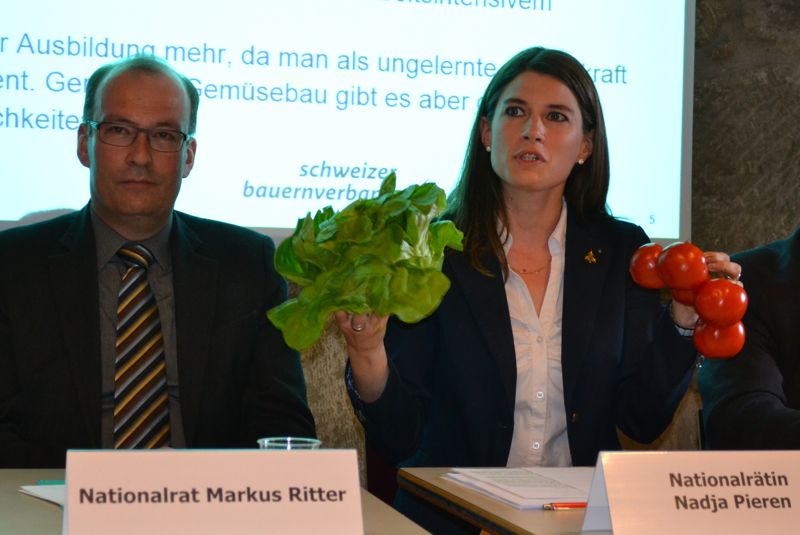 An der Pressekonferenz ebenfalls klar gegen die Initiative sprachen sich unter anderem auch Stefan Britschgi (Gemüsproduent und Vize-Präsident des Verbands Schweizer Gemüseproduzenten), Stephan Müller (Biogemüseproduzent und Vertreter Vorstand VSGP) und Yvonne Eberhard (Interessenverein Arbeitnehmer im Gemüsebau IVAG) aus.