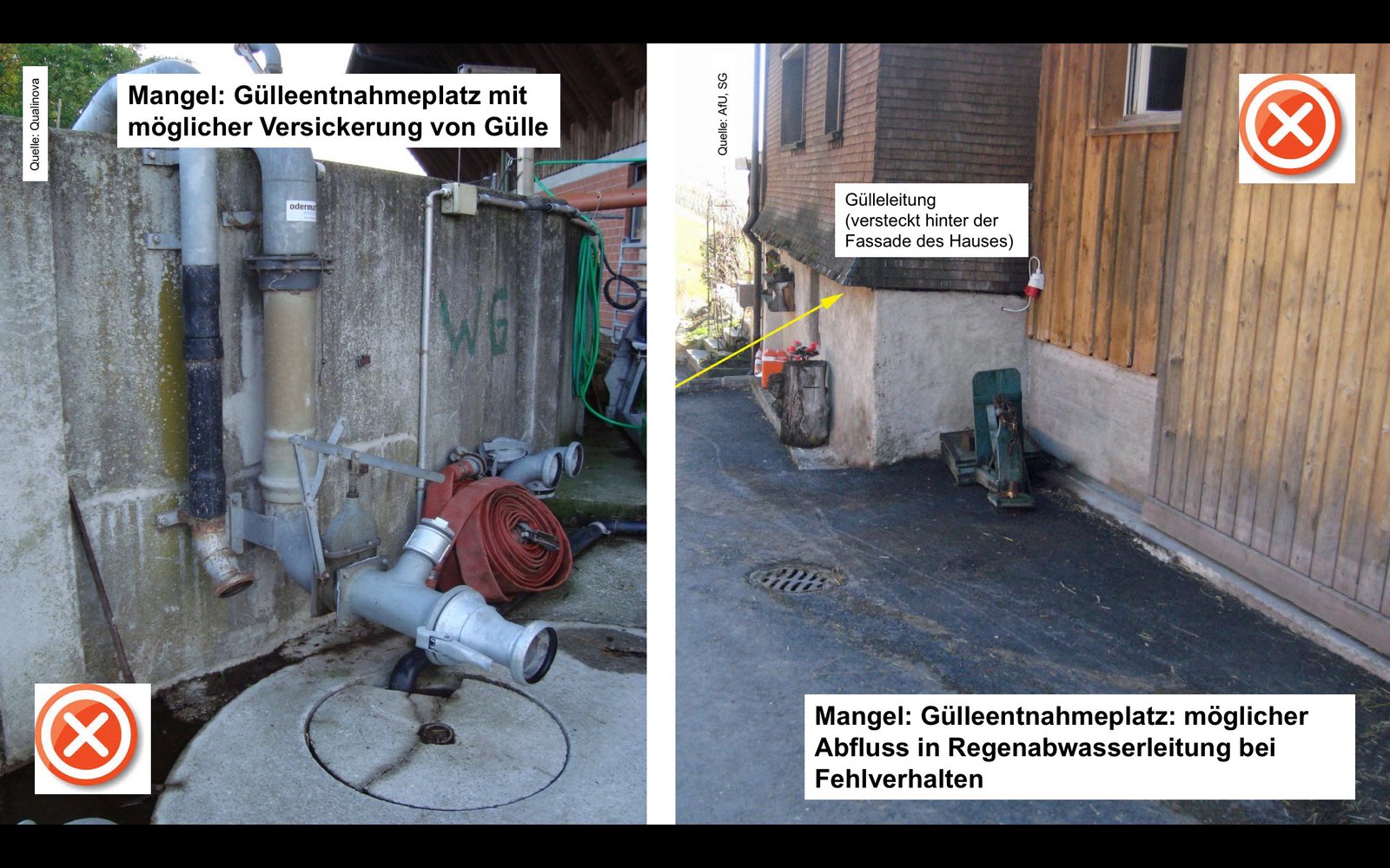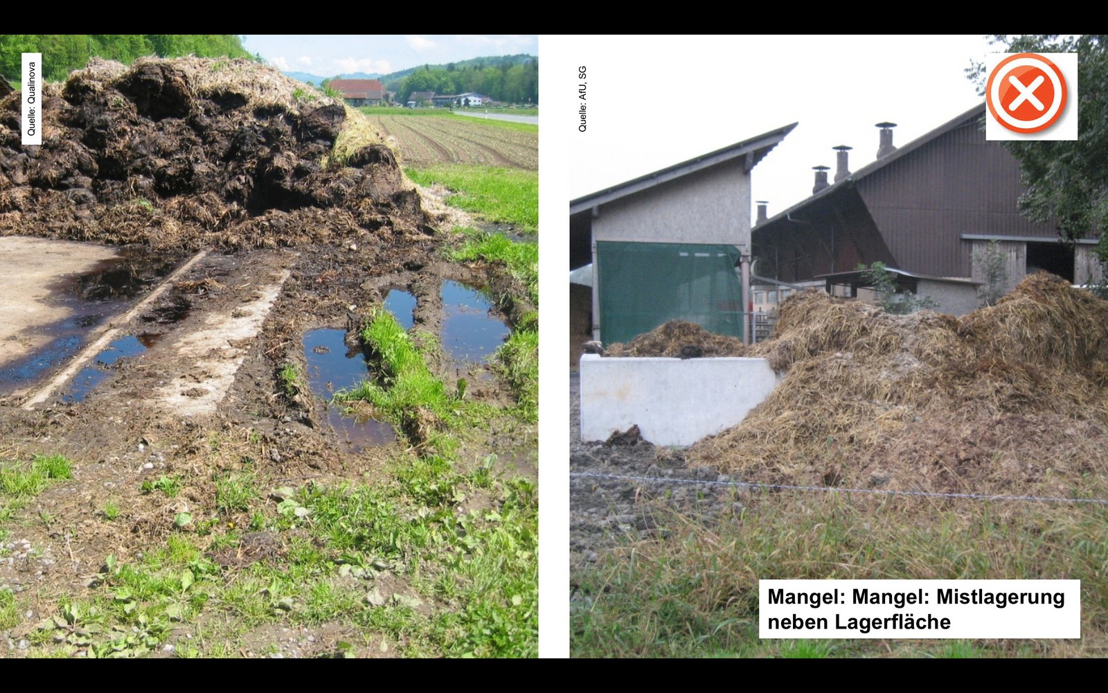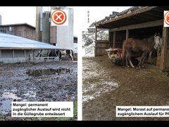 In unserer Bildergalerie sehen Sie Fotos von mangelhaften Einrichtungen und positive Beispiele zum Thema Gewässerschutz auf dem Betrieb und auf Weiden. Zusammengestellt von Agridea.