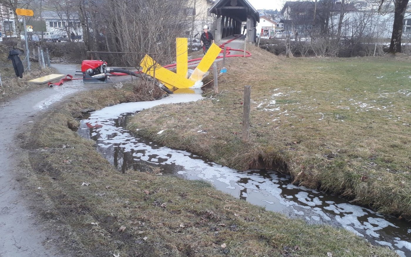 Gemäss Mitteilung der Kantonspolizei Appenzell Innerrhoden bemerkten Passanten am Montagnachmittag Schaumbildung im Mühlelibach und alarmierten sofort das Amt für Umwelt. Der ausgerückte Pikettdienst bot umgehend die Fischereiverwaltung und die Feuerwehren Schwende und Appenzell auf.