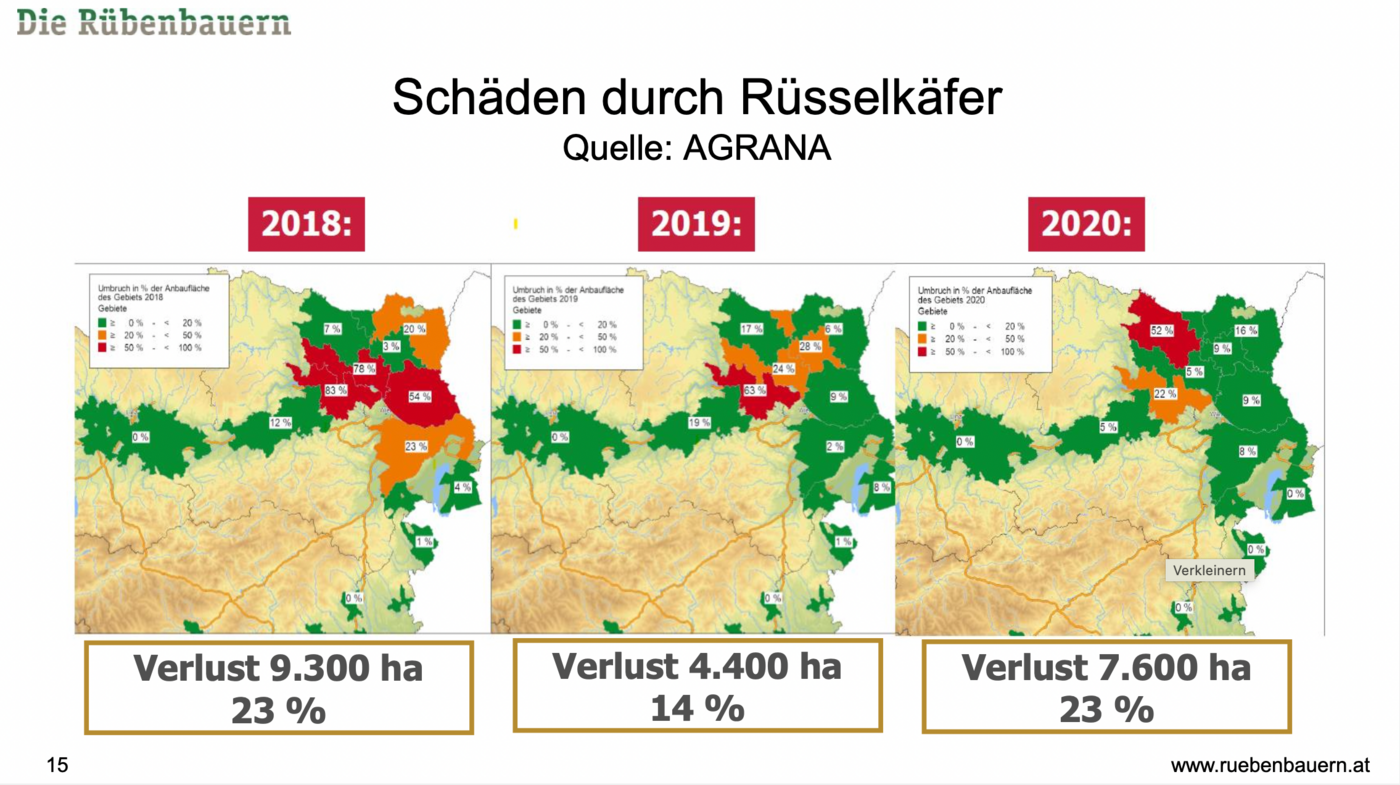 Darum bietet die Branche eine Wiederanbauprämie nach Schädlingsbefall von 250,00 € pro Hektare an und man ziehe (unter Einbeziehung des Bienenmonitorings) Notfallzulassungen für Neonicotinoide in Betracht. Dabei würden die geltenden Fruchtfolgeauflagen berücksichtigt: Nach Zuckerrübe sind nur Getreide, Rispenhirse, Soja oder Mais erlaubt.
