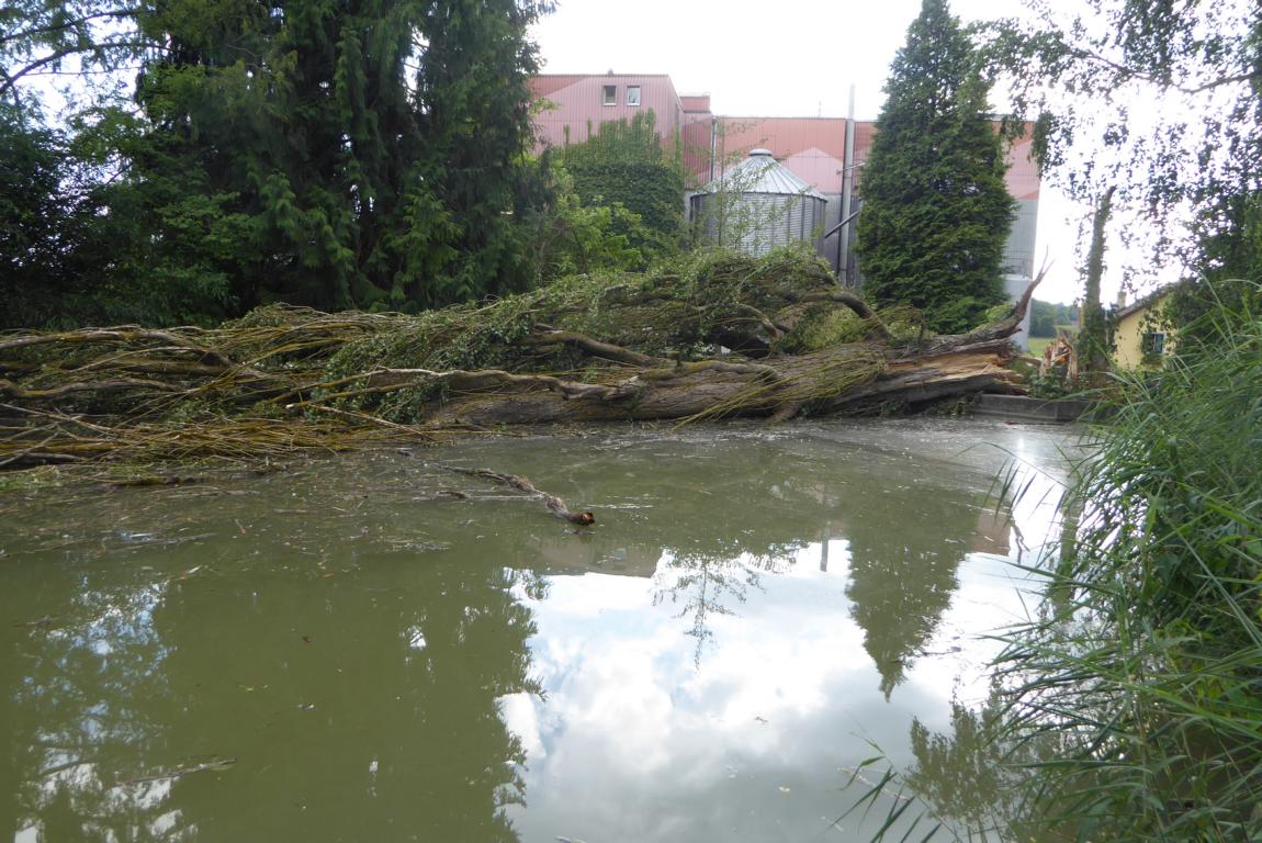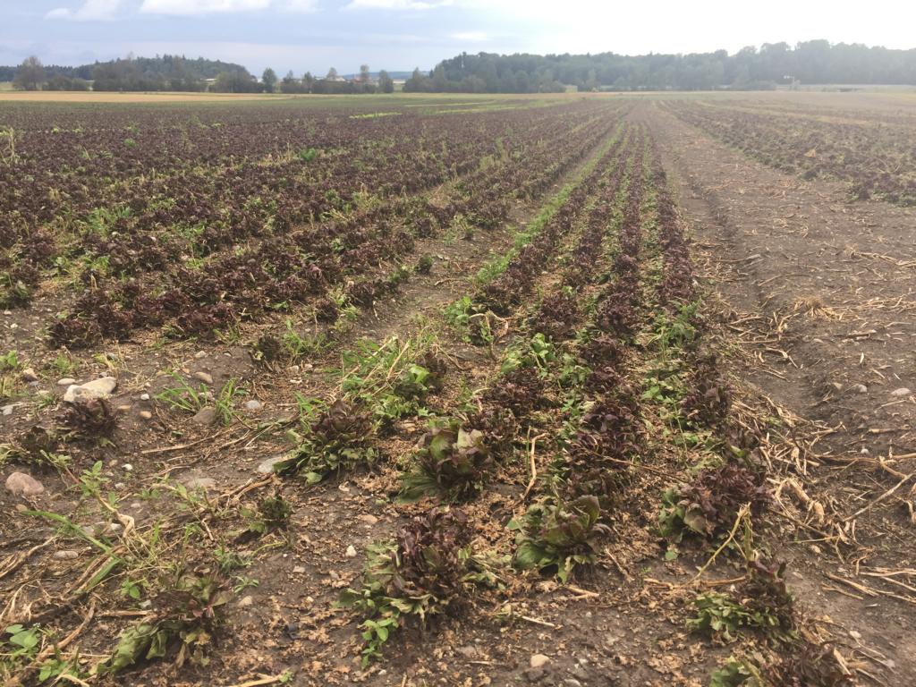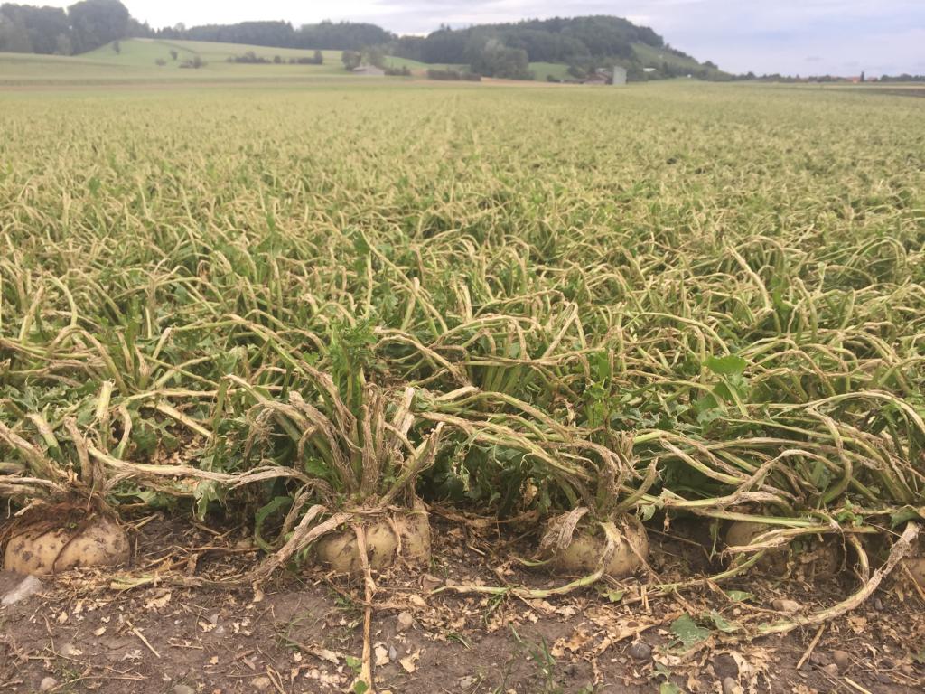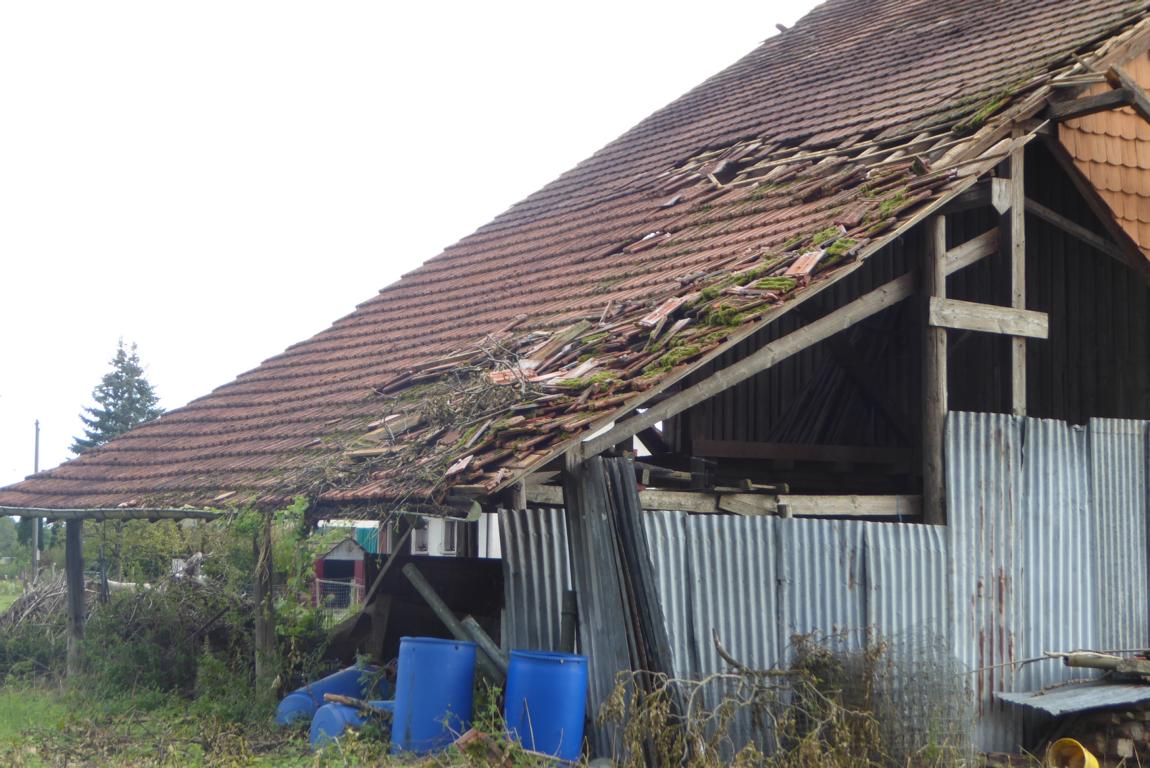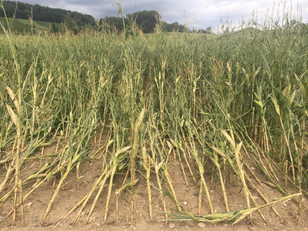 Die landwirtschaftlichen Felder bieten nach dem Sturm ein äusserst trauriges Bild. Teilweise wurden die Pflanzen vom Hagel derart malträtiert, dass sie kaum noch erkennbar sind. Die Weintrauben sind zerstört und beginnen zu faulen. Der Mais wurde vom Wind niedergewalzt. Vom Salat ist kaum mehr etwas erkennbar – dieser wurde vom Hagel geradezu gehäckselt. Überall liegen umgestürzte Bäume und fehlende Dachziegel sind bleibende Zeugen des Sturmes. Besonders übel mitgespielt wurde den Kürbissen. Sie weisen Muster von Löchern auf, die von den Hagelsteinen stammen und beginnen nun am Boden zu faulen. Die Sonnenblumenfelder sehen aus wie ein Mini-Wald, der vom Sturm gefällt wurde.