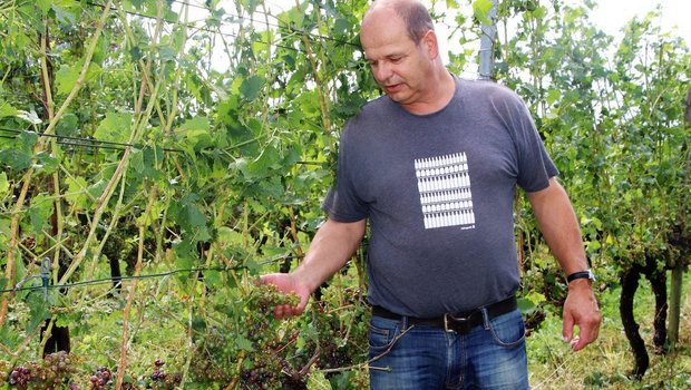 Reutimanns investierten nach dem Hagel zwei Tage ins Traubenreduzieren. Dies hat sich gelohnt: Das Traubengut, das noch hing, wurde trotz weniger Laub schön reif und hatte am Schluss 89 Oechsle. Vielleicht werde ich nächstes Jahr im Coop sogar eine Flasche Federweissen kaufen. Denn als solchen werden meine geernteten Blauburgunder-Trauben verkauft.