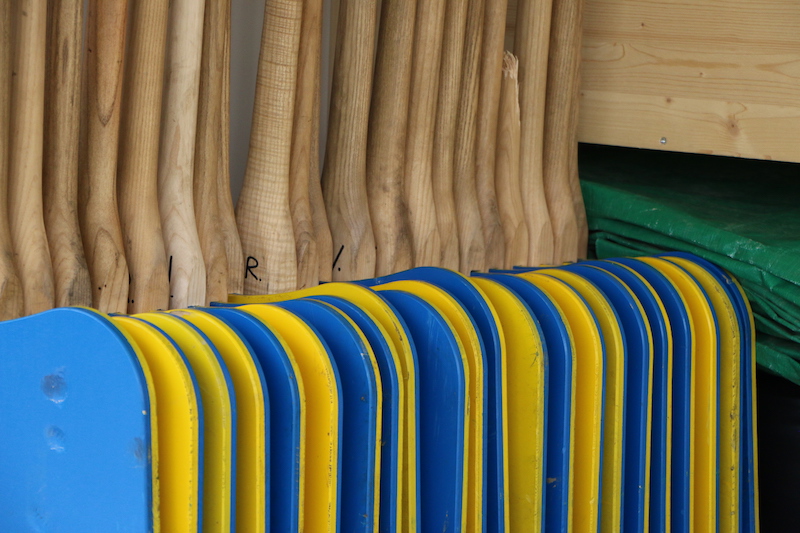 Schindel: Holzbrett (65 x 65 Zentimeter) mit Stiel.