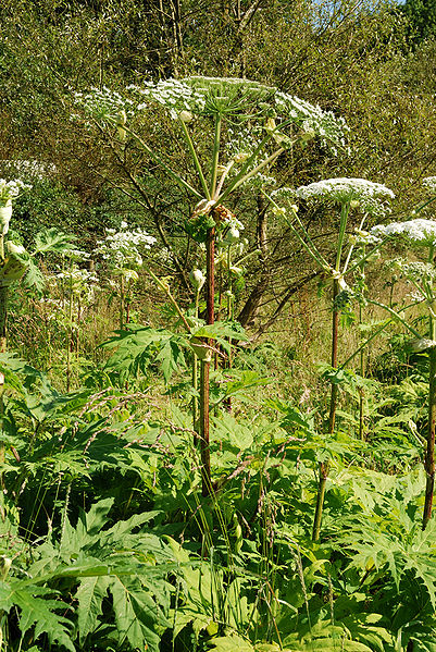 Der Riesen-Bärenklau (Heracleum mantegazzianum oder Heracleum giganteum) wird auch Herkulesstaude oder Herkuleskraut genannt und ist eine krautige Pflanze. Sie kann bis zu 3 Meter hoch werden, Stängel und Blätter sind grün mit purpurnen Flecken und meist dicht behaart. In Europa und Amerika ist er ein Neophyt. Kinder sind besonders gefährdet, da die grosse Pflanze geradezu einlädt, sich darunter zu verstecken oder mit den hohlen Stängeln zu spielen.