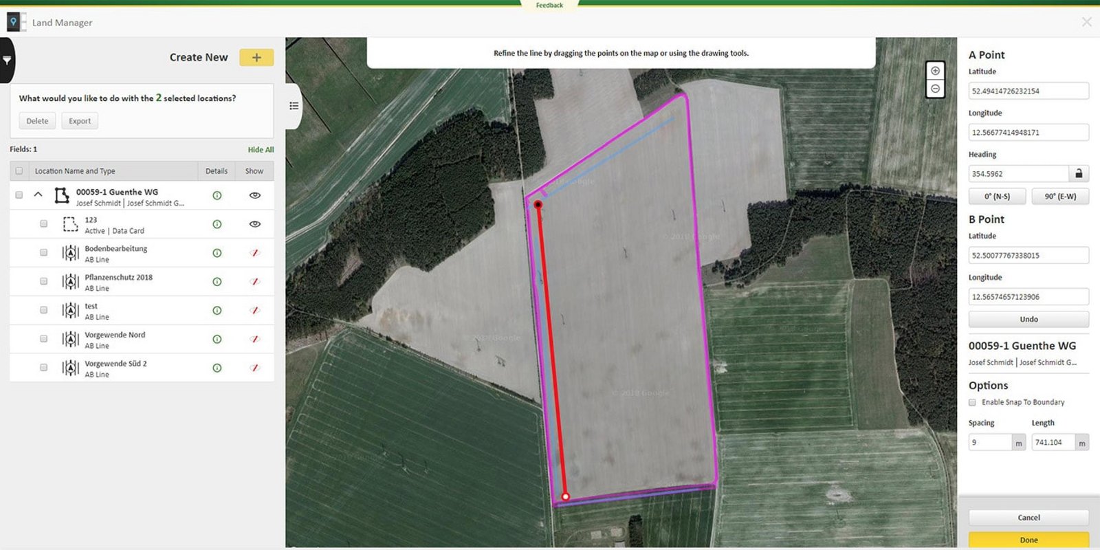 Durch Autotrac können Spurführungslinien, Feldgrenzen und viele weitere Daten erfasst und an andere vernetzte Maschinen gesendet werden. (Bild John Deere)