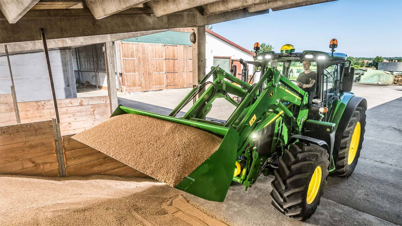 Die ersten Neuerungen, die vorgestellt werden, betreffen die Modelle der Serie 6M. Seit ihrer Lancierung im Jahr 2012 seien die kompakten Modelle mit dem kleinen Wendekreis sehr erfolgreich gewesen, verrät Lenge. Die in Mannheim produzierten Zugmaschinen sind wahlweise mit vier oder sechs Zylindern erhältlich und erfreuen sich laut Lenge vor allem ihrer hohen Nutz- und Zugsleistung sowie ihrer Flexibilität wegen grosser Beliebtheit. Gute Rückmeldungen zur Serie 6M habe John Deere auch immer wieder wegen der guten Sicht aus der Fahrerkabine erhalten.