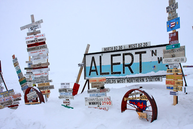 Alert liegt am 82. Breitengrad am Ufer des Arktischen Ozeans. Die Militärbasis wurde eingerichtet, um russische Kommunikation abzufangen. Seit 1950 gibt es dort eine Wetterstation.